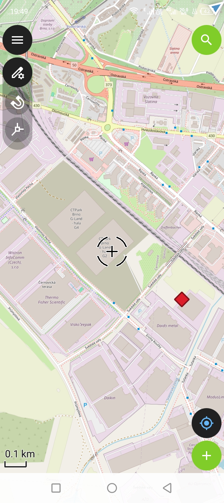 Posuneme kurzor na místo, kam chceme bod umístit tak že posuneme mapu. Posouvá se pouze kurzor s modrým kolečkem.