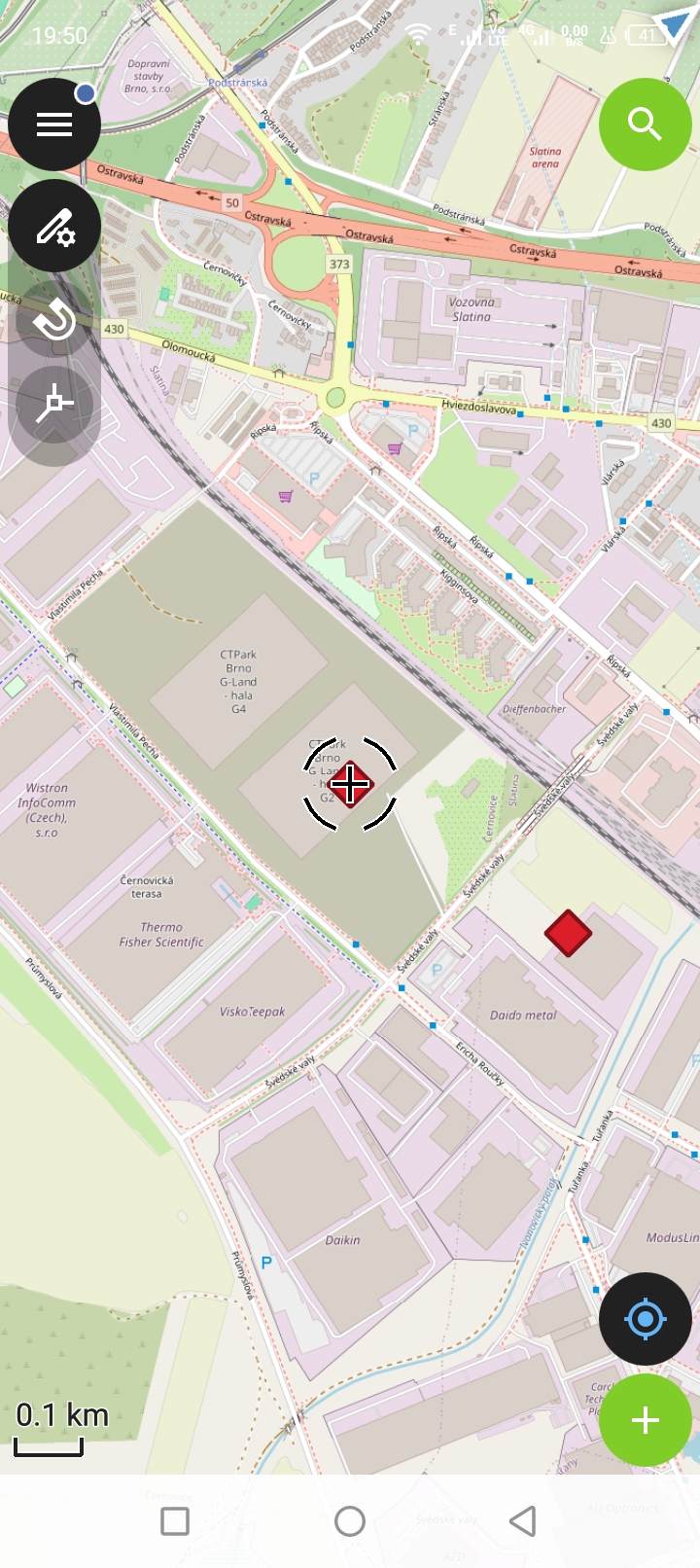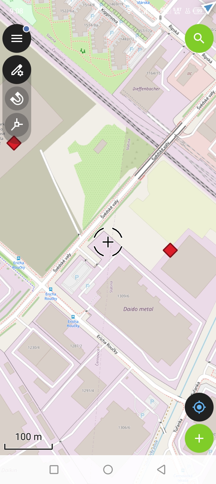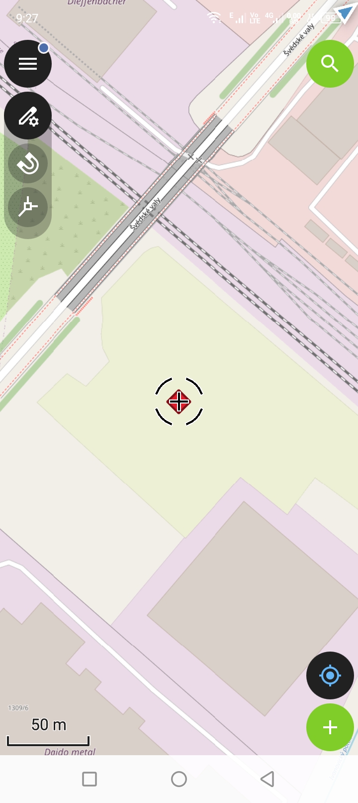 V případě bodové vrstvy je přidávání velmi pdobné jako přidávání bodů měření. Posuneme mapu tak aby kurzor byl v místě kam chceme umísti bod a zvolíme talčítko Plus.