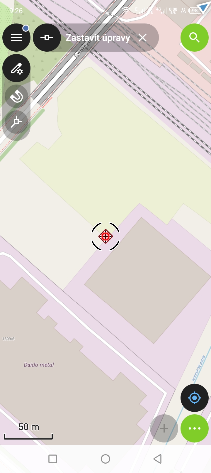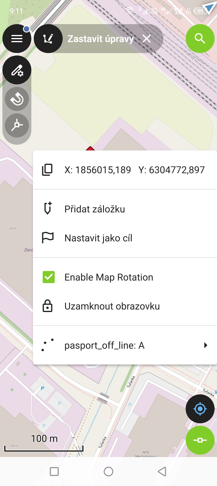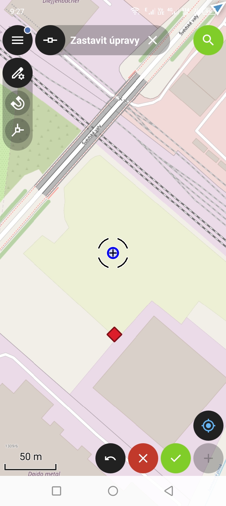 Umístění potvrdíme zelenou potvrzovací ikonou. Bod se přesune na nové místo.