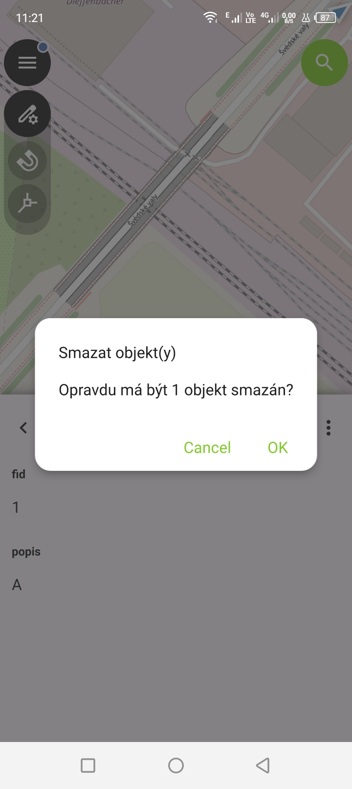 Potvrzení odstranění geoprvku.