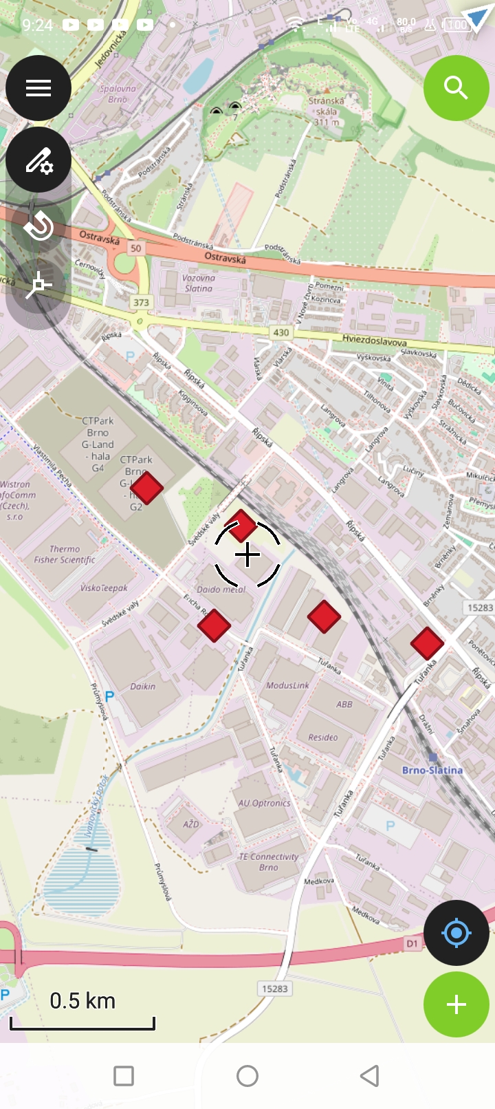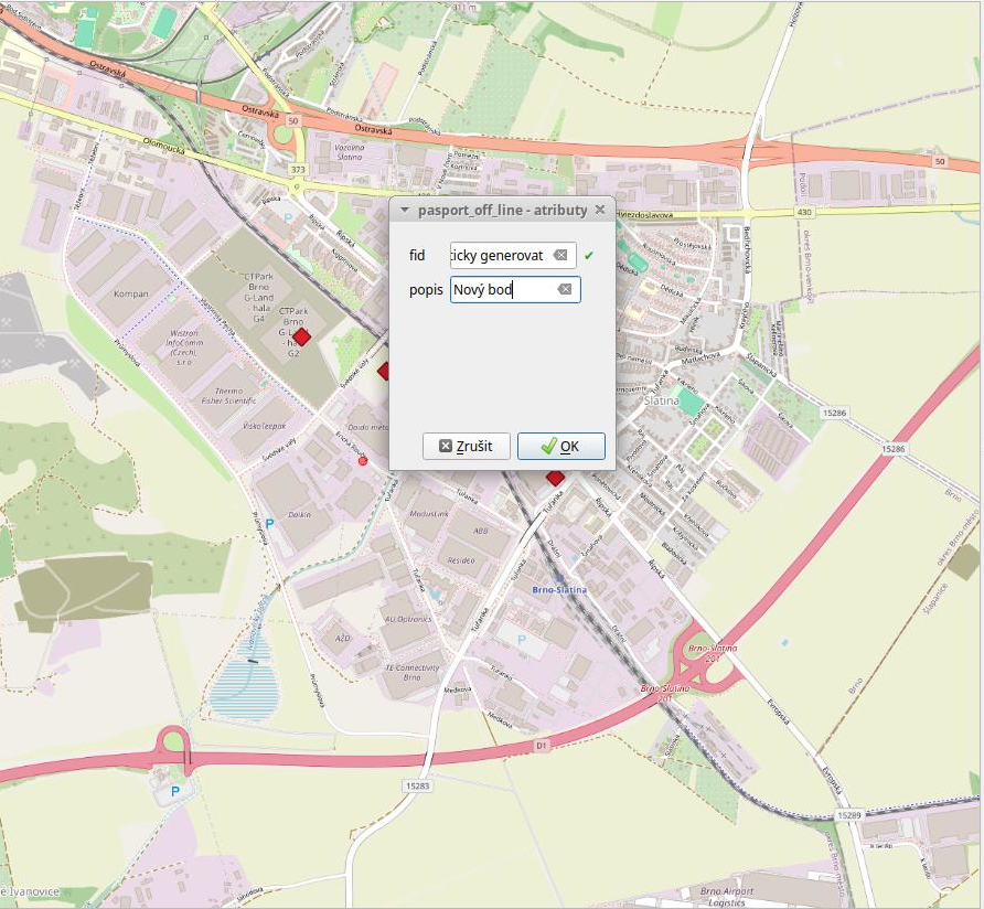 Data se stáhnou z cloudu a již je máme k dispozici v mapě. Vidíme nově přidaný bod.