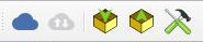 Nainstalovaný modul instaluje nástrojovou lištu, která slouží k sychronizaci jak přes cloud, tak i bez využití cloudu. Součástí lišty je i nastavení pro QField.