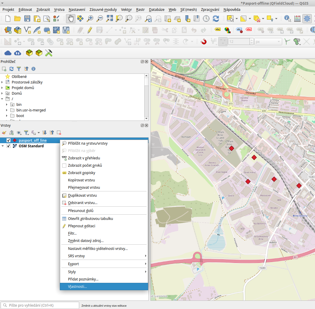 Symbologie a další nastavení vrstev je součástí QGIS projektu a přenáší se tak i do QField.
